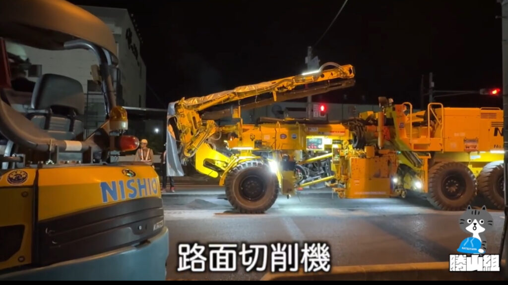大きな道路は交通量が多いため、夜間工事で行うことが多いです。