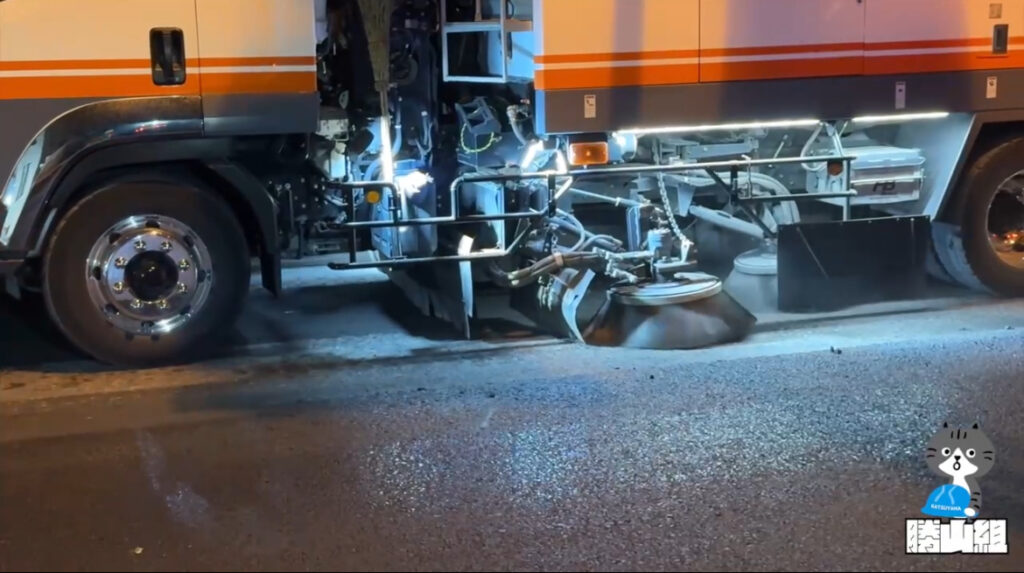 路面清掃車で削った面を綺麗にします。